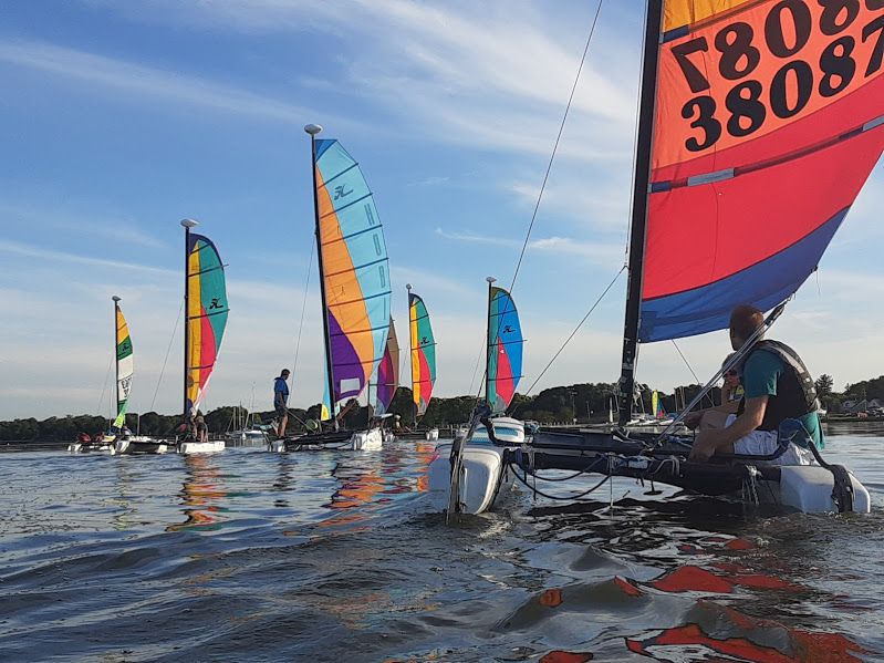 All levels of ability are welcome! Students should feel comfortable in deep water wearing a life jacket. Lessons are provided on Hobie Wave catamarans.