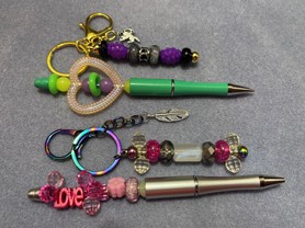 Beaded Pens and Keychains: Create one of a kind pens and keychains for a gift or your own use. Participants will create 2 pens and 2 keychains. NEW- Select a silicone focal bead for each piece!